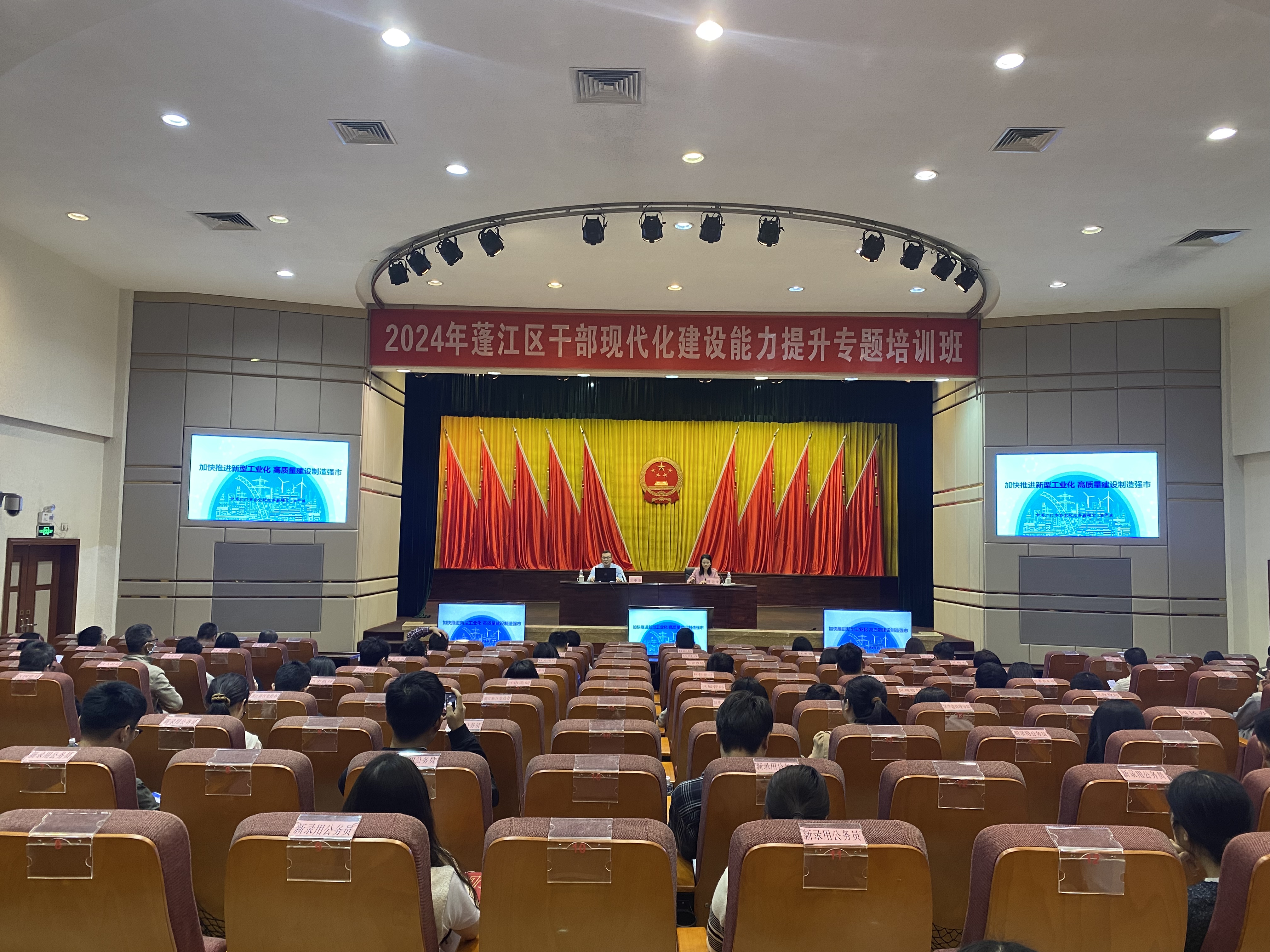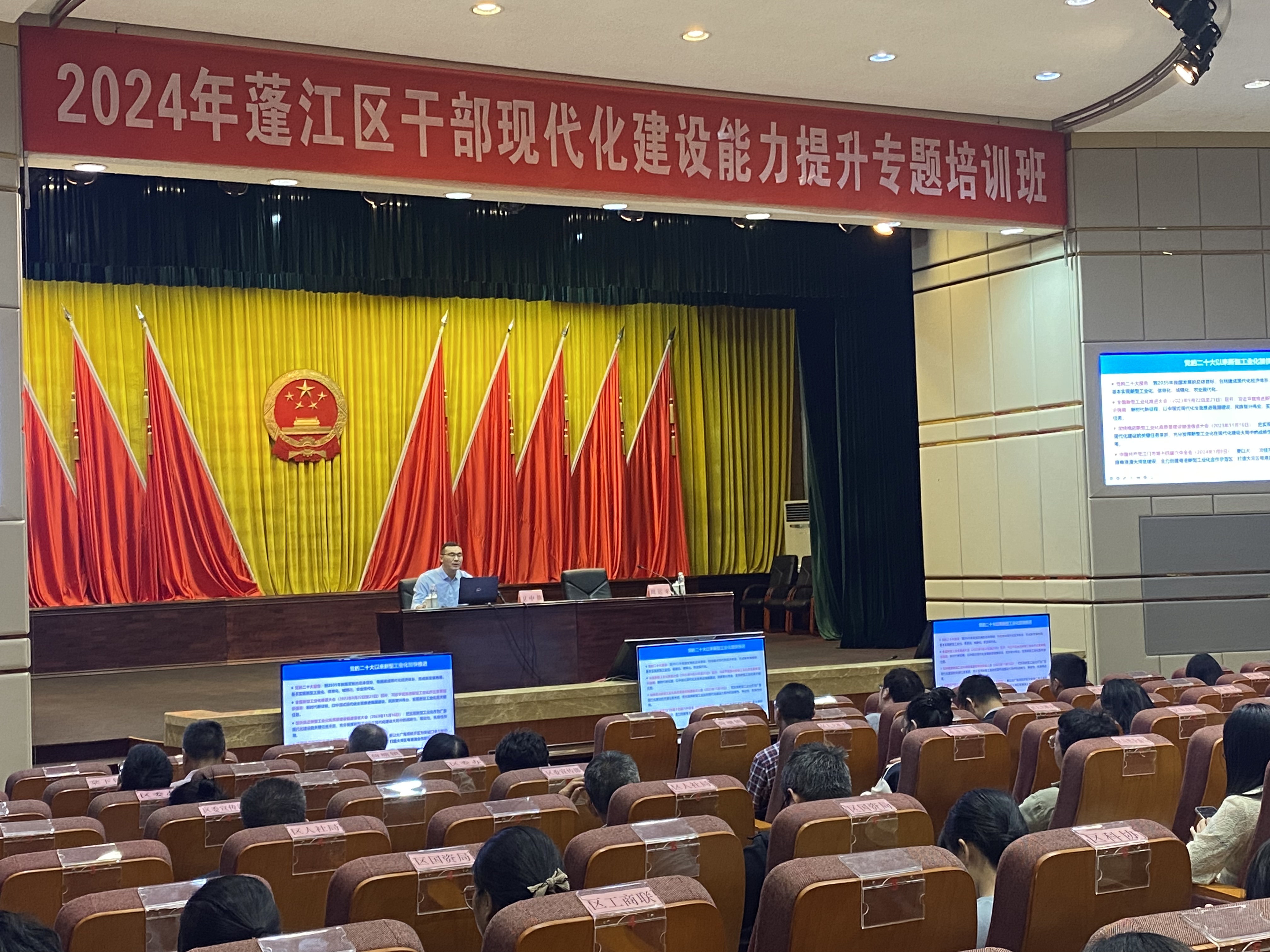 在全区上下纵深推进“百千万工程”,全力推进高质量发展的关键时刻,近日,“蓬江夜校”举办第一期干部现代化建设能力提升专题培训班。该专题培训班围绕粤港澳大湾区建设、制造业当家、“百千万工程”、应急处突等主题,通过专题授课、案例教学等一系列专业化培训,全面提高领导干部现代化建设能力,为蓬江区打造出一支高素质专业化的干部队伍。开班第一课邀请了江门市委党校经济教研室主任、副教授卫中旗作《加快推进新型工业化 高质量建设制造强市》专题辅导,各镇(街)、区直单位约150人参加培训。